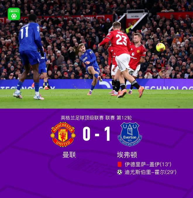北京时间11月25日,英超第12轮比赛,曼联主场迎战埃弗顿。上半场,盖伊掌掴队友基恩被罚下场。随后霍尔射入死角,为太妃糖队取得领先。下半场,皮克福德多次做出英勇扑救。全场比赛结束,曼联主场0-1不敌埃弗顿,埃弗顿仅剩下10人。在一场关键比赛的第16分钟,盖伊对他的队友基恩感到沮丧,两人发生了碰撞。裁判志宏率先将其罚下。第29分钟,客队控制局面。霍尔向死角开枪。曼联 0-1 伟大的时刻。两支球队的球员都参加了比赛。比赛马上就要开始了。第8分钟,塔尔科夫斯基放倒了齐尔克塞。随后双方开始争论。第10分钟,有人怀疑他因伤无法坚持。奥布莱恩换下科尔曼。第16分钟,盖伊很不高兴与队友基恩发生碰撞。裁判志宏率先将其罚下。第24分钟,齐尔克塞禁区前倒地。裁判没有判罚点球。第29分钟,客队传球,霍尔射门打入死角。曼联0-1。第33分钟,齐尔克塞传球,多古射门偏出。第41分钟,镜头转向乐队。主教练图赫尔从第42分钟开始观看比赛。迪亚罗低射,但皮球偏出球门。第45分钟,B.费远射,皮克福德插上将球扑出。第46分钟,曼联立即开始为下半场做出调整。芒特替补登场。第53分钟,芒特头球攻门偏出迪亚洛传球。第58分钟,基恩禁区内解围,姆贝莫得手。裁判没有判罚点球。第64分钟姆贝莫险些偏出,第72分钟芒特的射门也偏出。第80分钟,芒特帕斯球传出去,B. Fee 的脚背弹了起来。第80分钟,齐尔克泽头球破门,但皮克福德做出精彩扑救。第81分钟,B.费远射。不过,球有点高。埃弗顿在第88分钟做出换人,换上格里利什和霍尔。第90分钟,德里赫特传球,齐尔克泽头球攻门被皮克福德扑出。球队阵容技术统计【英超只见咪咕】