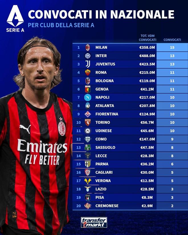 - 编辑:admin -10月国际比赛期间意甲球队召唤次数:米兰15次、